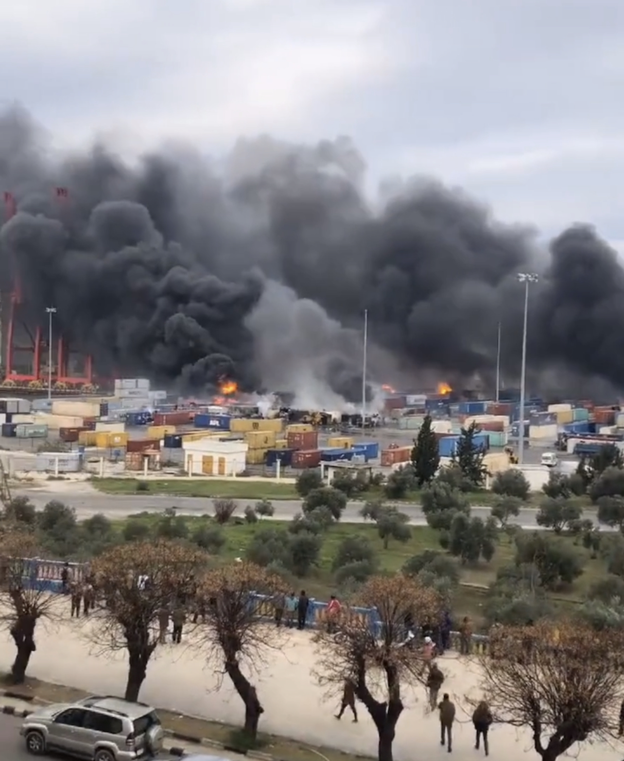 استهدفت صواريخ اسرائيلية ساحة الحاويات في ميناء اللاذقية التجاري على الساحل السوري، ما أدى لاشتعال حرائق في الحاويات ووقوع أضرار مادية كبيرة في المرفأ والمنطقة المحيطة به، وفق وكالة أنباء الحكومة السورية سانا.