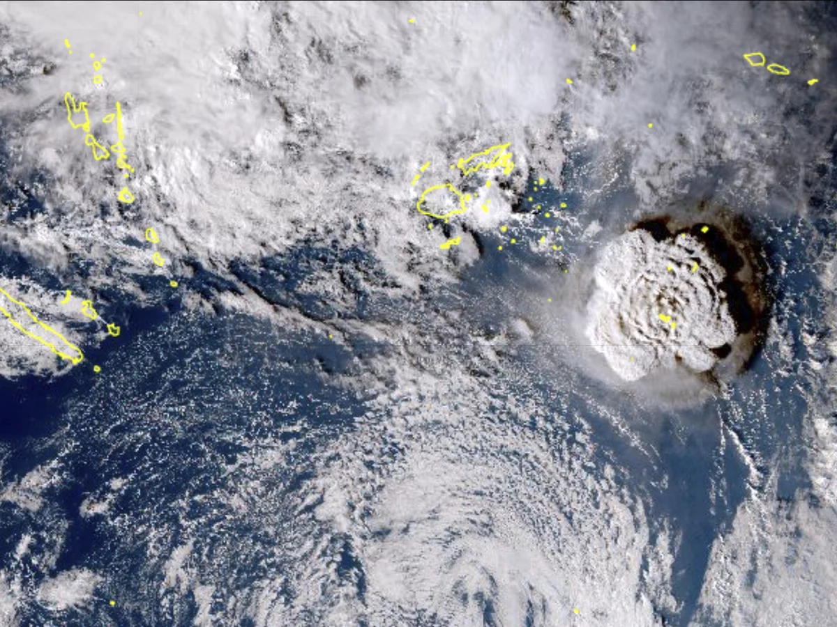 انفجر بركان ضخم تحت مياه المحيط الهادئ قبل غروب الشمس بقليل يوم الجمعة 14 كانون الثاني 2022، مما تسبب في موجات عاتية على شواطئ دولة تونغا، الجزيرة التي تقع في المحيط الهادئ. وامتدّت الأمواج عبر المحيط الهادئ من أستراليا إلى كندا، بما في ذلك الساحل الغربي للولايات المتحدة.