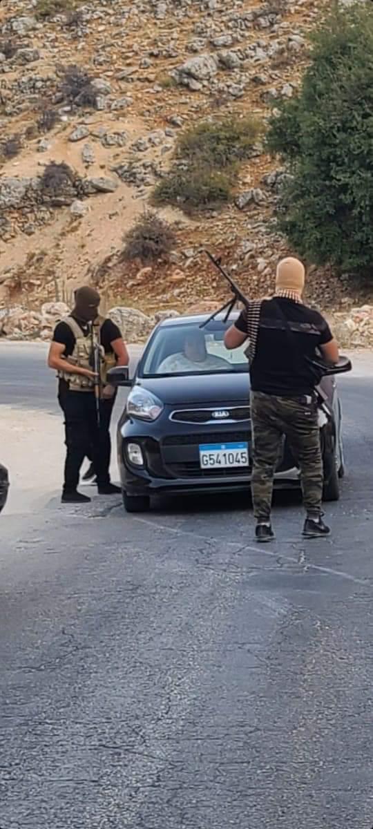 انتشرت صور على مواقع التواصل الاجتماعي لما يبدو انه حاجز لأشخاص يوقفون السيارات ويدقّقون في الهويات.