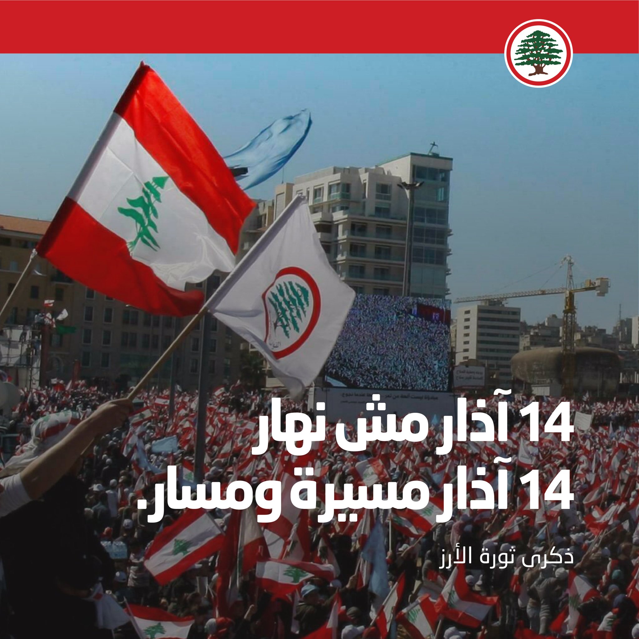 اضاف: “بين 14 اذار و14 اذار، ربيع ثاني، براعمه بدأت بالظهور رغم العواصف والرياح العاتية والرعود التي تضرب لبنان، لأن براعم هذا الربيع الثاني لا يمكن الا ان تكون مثل براعم الربيع الأول عام 2005، وتزهر في القريب العاجل املا ورجاء وتصميما وارادة صلبة من جديد، كي يقطف شعبنا ثمرة الحرية والسيادة والازدهار والانتصار على كبوته، بعد هذا الشتاء القاسي والليل الحالك والطويل. فالف تحية لـ14 آذار في ربيعها الأول وربيعها الثاني الموعود، وفي كل مرة يحتاج فيها لبنان الى ربيع جديد”.