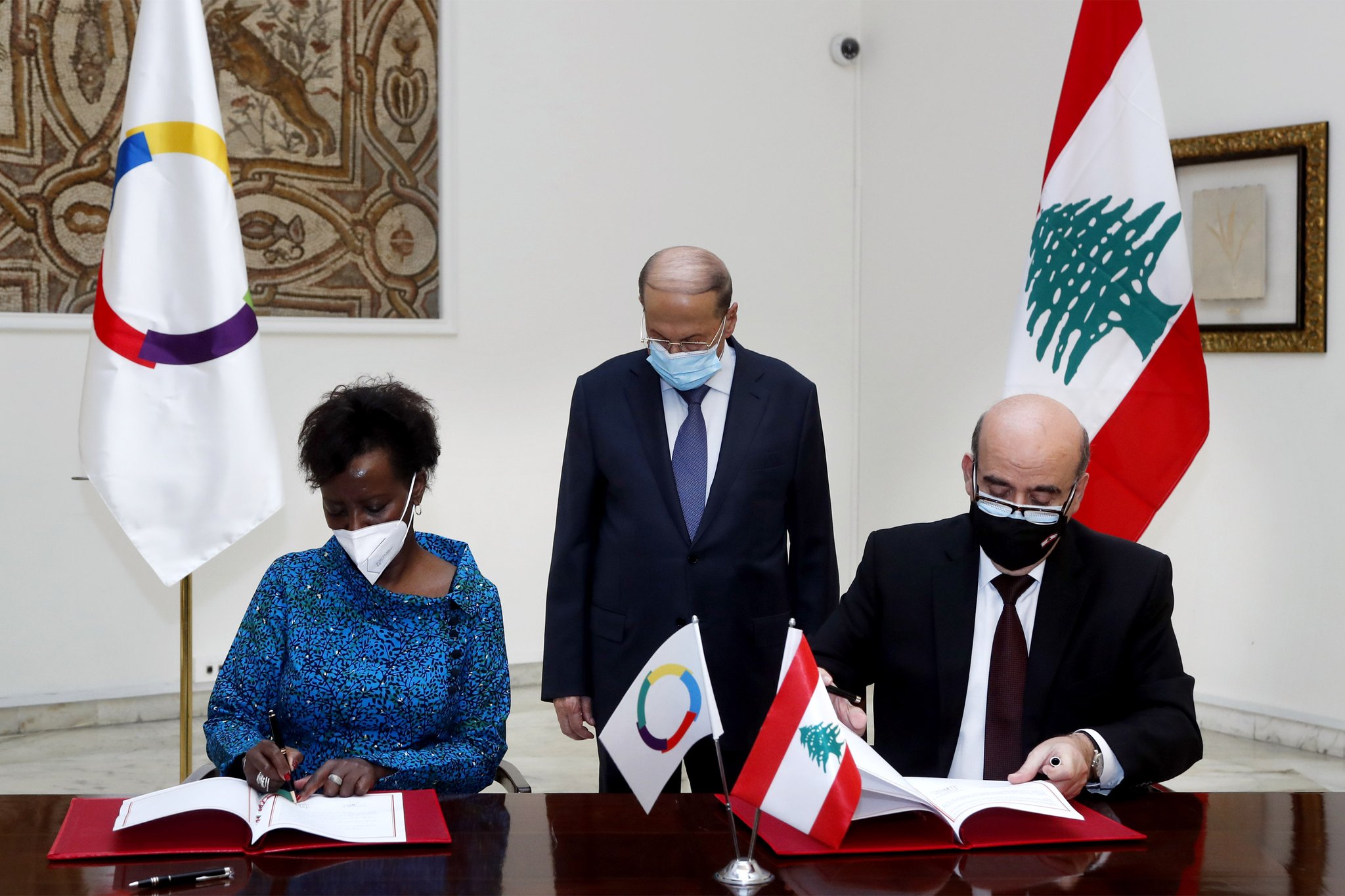 استقبل رئيس الجمهورية اللبنانية ميشال الامينة العامة لمنظمة العمل الفرنكوفوني وتم التوقيع على خطة العمل. ونشرت رئاسة الجمهورية صورة تذكارية للمناسبة في بيان جاء فيه “الرئيس عون يشهد توقيع خطة عمل للفرنكوفونية في لبنان، بين الأمينة العامة للمنظمة السيدة لويز موشيكيوابو ووزير الخارجية شربل وهبة”