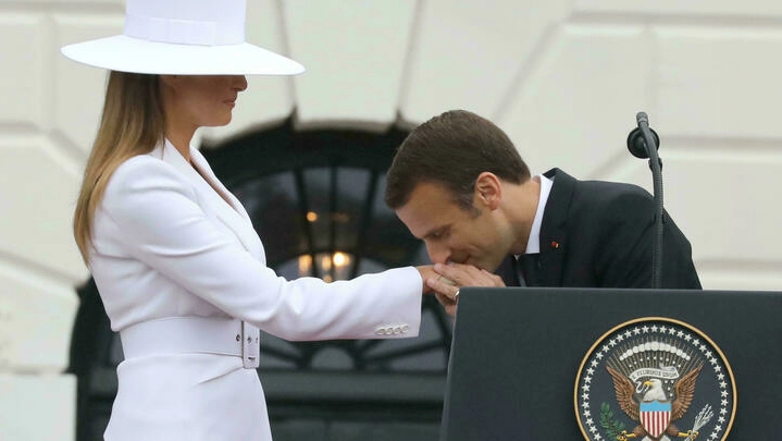 واعتمرت ميلانيا خلال زيارة الزوجين الرئاسيين الفرنسيين لواشنطن القبعة المعروضة للبيع في المزاد، وكان صممها لها مصمم الأزياء الخاص بها الفرنسي الأميركي إيرفي بيار.